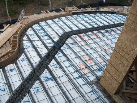 The FORTRUSS EPS concrete forming system offers unparalleled benefits for creating aesthetically pleasing and durable colored or stamped concrete finishes. Ideal for heated floors, FORTRUSS maximizes efficiency, enhances fire safety, reduces noise, and can deliver insulation values exceeding R40. This versatile system is perfect for constructing floors, decks, and roof structures with clear spans of up to 40 feet. Dive into the innovative Fortruss system, specifically designed for residential construction, featuring a suspended slab design that boosts structural integrity and insulation.